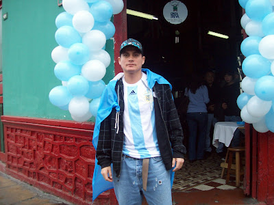 Verdad que ya falta poco, primero a los negros de Nigeria, después a Corea (que franco solo deben hacer chifa, películas de terror, artes marciales, etc pero jugar futball andaaaaaaaaaaa), de ahí Grecia (que debe seguir con la mitología), y ahora Mexico (el país mas pacharaco del mundo, y franco solo deben comer enchiladas o ver el chavo), reunidos una vez en el Canta Rana de Barranco, junto a mis viejos, mi linda esposa y mi primo, tan hincha argentino como yo, aunque creo que el Sábado 3 de Julio contra los Alemanes nos reuniremos en Miraflores, para celebrar el pase a la Semifinal, esta vez con el Diego a la cabeza daremos la vuelta. No hay necesidad de ser ARGENTINO, para tener ese sentimiento dentro de tu ser, solo sabrás que eres ARGENTINO cuando...